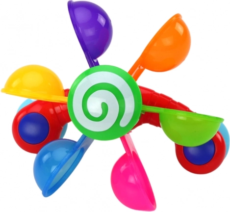 Nasza zabawka kąpielowa oferuje 6 kolorowych miseczek, które obracają się, gdy tylko nalajesz na nie wody. Miski zaprojektowano tak, aby wspierały kreatywność i wyobraźnię twojego dziecka. Dzięki przyssawkom można łatwo i bezpiecznie mocować zabawkę na brzegu wanny.