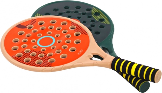 .Zestaw 2 paletek do padla do sportowej gry padel w eleganckich kolorach: zielonym i kremowym. Paletki wykonane są z wysokiej jakości plastiku, są wytrzymałe i solidne. Zamiast tradycyjnej siateczki (jak w klasycznej rakiecie tenisowej) zastosowano plastik z otworami.