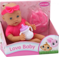 Ta lalka–niemowlę w różowym ubranku jest idealna na pierwsze odgrywanie ról. Dzięki dołączonym akcesoriom – miseczce z łyżeczką i widelczykiem oraz butelce – dzieci mogą naśladować karmienie i codzienną opiekę. Świetny wybór do rozwoju małej motoryki i umiejętności społecznych.