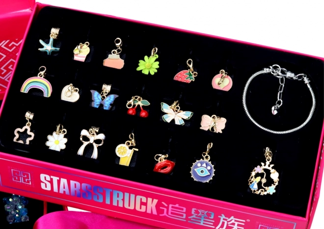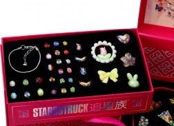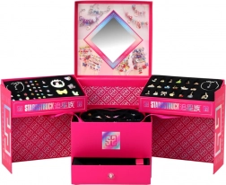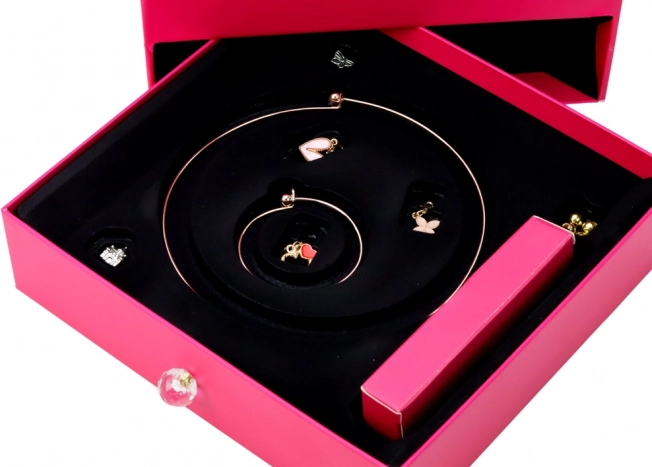 Ten obszerny zestaw do tworzenia biżuterii w różowej szkatułce (26 × 23 × 23 cm) zachwyci każde dziecko, które lubi tworzyć. Po otwarciu ścianki pudełka rozsuwają się, odsłaniając trzy duże półki z kolorowymi skarbami – od zawieszek w kształcie motylków, kwiatuszków i gwiazdeczek po bogaty wybór koralików z pięknymi wzorami. Pośrodku znajduje się duże serce z starannie posegregowanymi mini koralikami, na dole zaś wysuwana szuflada z kolorowymi sznureczkami, zawieszkami i złotym naszyjnikiem jako bazą do tworzenia oryginalnej biżuterii.