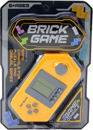 Kieszonkowa elektroniczna konsola Tetris Brick Game w eleganckiej szaro‑żółtej kolorystyce zapewnia klasyczną rozrywkę zawsze i wszędzie. Obracaj i układaj klocki tak, aby wypełniać całe linie, zdobywaj jak najwięcej punktów i trenuj spostrzegawczość oraz myślenie strategiczne. Kompaktowe wymiary, proste sterowanie i zasilanie na baterie AAA czynią z niej idealną zabawkę w podróż i do domu.