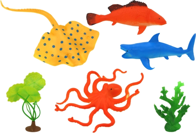 Zestaw figurek morskich zwierząt 7 sztuk roślin wodnych