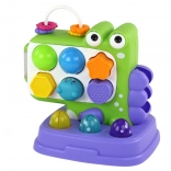 Pierwszym elementem zachęcającym do zabawy jest gra „Whac‑a‑Mole”. Na panelu znajdują się trzy urocze dinozaurowe jajka, które losowo wyskakują z otworów, a dziecko musi szybko je trafić młoteczkiem dołączonym do zestawu. Ta dynamiczna zabawa rozwija koordynację ręka‑oko oraz uczy reakcji i koncentracji.