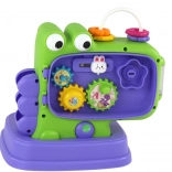 Następną fascynującą częścią zabawy jest panel edukacyjny z literami od A do E. Umieszczone na nim literki, będące częścią gry, można przesuwać za pomocą króliczka na suwaku, ucząc się kolejności liter i ich rozpoznawania. Trzy kółka zębate z literami dodają jeszcze więcej możliwości zabawy i nauki, zachęcając dzieci do interaktywnego i przyjemnego poznawania alfabetu.