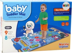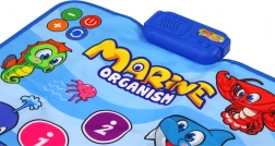 Powierzchnia taneczna maty zawiera 9 interaktywnych przycisków, które po naciśnięciu uruchamiają różne efekty dźwiękowe i melodie, zachęcając dziecko do aktywności i odkrywania. Z kolei po naciśnięciu jednego ze zwierzątek dziecko usłyszy odgłosy, które wydaje to podwodne stworzenie.