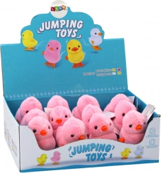 Urocze nakręcane pluszowe kurczątko w różowym kolorze, które po nakręceniu radośnie podskakuje. Bez baterii, miękkie i delikatne, świetna dekoracja i zabawka dla dzieci od 3 lat. Certyfikat CE i zgodność z EN71.