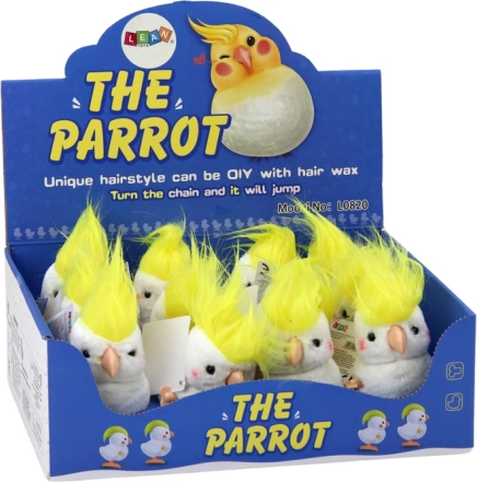 Ta nakręcana pluszowa papuga w stylu kakadu zachwyca delikatnym białym futerkiem i wyrazistym żółtym czubem. Doskonale sprawdzi się jako drobny upominek, dekoracja na półkę oraz codzienny towarzysz zabawy. Po nakręceniu mechanizmu papuga radosnie skacze i w kilka sekund rozkręca zabawę.