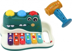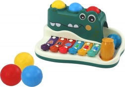 Uroczy krokodyl łączy ksylofon, pianinko i interaktywną zabawę z piłeczkami w jednej zabawce. Dzieci mogą grać pałeczką na kolorowych lamelach, ćwicząc motorykę, słuch oraz rozpoznawanie liczb i liter. Bezpieczna zabawa z certyfikatem CE i zgodnością z EN71 dla dzieci od 3 lat.