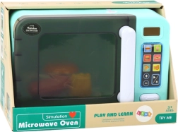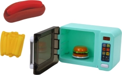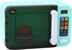 Interaktywna dziecięca kuchenka mikrofalowa w turkusowym kolorze zamieni zabawę w gotowanie w realistyczne doświadczenie. Oferuje efekty świetlne, obracający się talerz, otwierane drzwiczki oraz programy podgrzewania. W zestawie znajdują się zabawne produkty spożywcze (hamburger, frytki, hot dog) oraz baterie do natychmiastowego użycia.