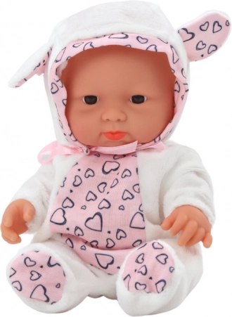 Ta mała laleczka niemowlę w miękkim białym ubranku w serduszka i z kapturem z uszkami natychmiast podbije serca dzieci. Dzięki kompaktowym wymiarom łatwo ją trzymać nawet najmłodszym, świetnie sprawdzi się w domu i w podróży, oferując mnóstwo pomysłów na zabawę.