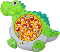 Zabawna rodzinna gra z motywem dinozaura dostarcza godzin radości i zdrowej rywalizacji. Zawiera dwie wędki do gry we dwoje, obracające się jeziorko oraz efekty dźwiękowe. Rozwija małą motorykę, koordynację oko–ręka i cierpliwość. Zasilana dwiema bateriami AA (brak w zestawie), posiada certyfikat CE i spełnia normę EN71.