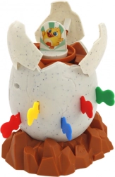 Interaktywna gra Wyskakujący Kurczak przekształci każdą chwilę w niezapomnianą przygodę. Umieść jajko na dołączonej brązowej podstawie, włóż kurczaka do jajka i rozpocznij grę z kolorowymi pinami. Gdy gracz umieści pin na właściwym miejscu, kurczak niespodziewanie wyskoczy z jajka, co zapewni mnóstwo śmiechu.