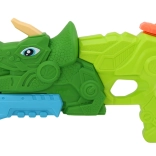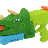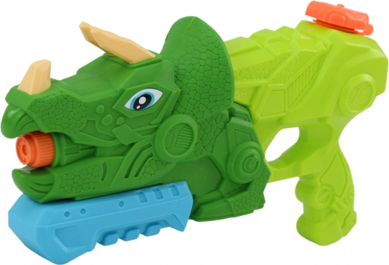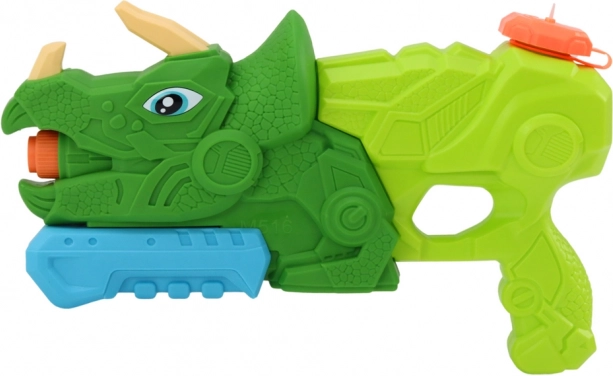 Pistolet na wodę dinozaur Triceratops to świetny wybór do dziecięcych wodnych bitew. Ten zielony dinozaur z pomarańczowymi i niebieskimi detalami został zaprojektowany tak, aby zapewniać świetną zabawę z bezpieczeństwem dla dzieci. Pojemność zbiornika wynosi około 1000 ml, a dzięki pompowanej rączce woda wystrzeliwuje z paszczy dinozaura.