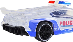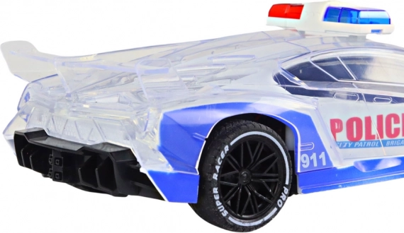 Przezroczyste elementy karoserii wzmacniają kolorowe światła policyjne – każda jazda to świetlny spektakl, który zachwyci dzieci i rodziców.