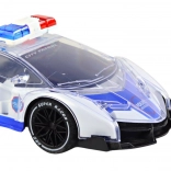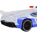 Odkryj pełną akcji zabawę z policyjnym sportowym autem w skali 1:16. Przezroczyste elementy karoserii rozpraszają kolorowe efekty świetlne, dzięki czemu każda jazda staje się przyciągającym wzrok świetlnym show. Realistyczne detale i oznaczenia z numerem 911 podkreślają autentyczny wygląd pojazdu interwencyjnego.