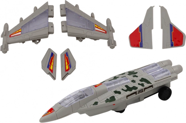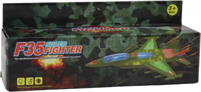 Szary kamuflaż, wyraziste skrzydła i detale uzbrojenia przypominają prawdziwy myśliwiec F‑35. Dzieci łatwo wcielą się w odważnych pilotów i wymyślą mnóstwo akcyjnych misji.