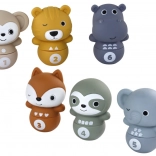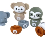 Każdy z 6 kręgli przedstawia inne zwierzątko i jest oznaczony cyfrą, dzięki czemu dzieci w naturalny sposób ćwiczą rozpoznawanie liczb i podstawy liczenia. Rozkładana konstrukcja ujawnia różne kształty do dopasowywania, które stymulują rozwój poznawczy i wspierają koncentrację.
