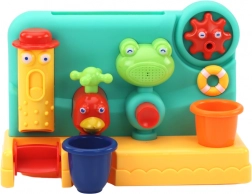 Urozmaicij kąpiel zabawą dzięki tej interaktywnej zabawce wodnej. Dzięki przyssawkom łatwo przymocujesz ją do wanny, wlejesz wodę do górnej części i wprawisz w ruch kolorowe elementy. Dzieci ucieszą się z koła wodnego, fontanny, kranika oraz zabawnej żabki z wypływem wody. Idealna do rozwoju motoryki i nauki przez zabawę podczas codziennej kąpieli.