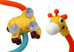Żyrafa ma obrotową część szyjną 360°, duże przyssawki do stabilnego mocowania na gładkich powierzchniach oraz proste sterowanie przyciskiem. Konstrukcja i kolory są przyjazne dzieciom, zabawka jest lekka i łatwa w montażu. Spełnia normy CE i EN71.