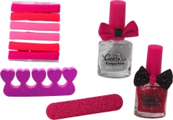W zestawie znajduje się także komplet do zdobienia paznokci, zawierający pilnik do paznokci, separator oraz dwa błyszczące lakiery do paznokci w kolorze srebrnym i różowym. Kreatywna manicure na wyciągnięcie ręki!