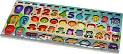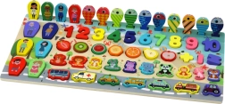Zestaw zawiera przestrzenne drewniane elementy, które dziecko może dopasowywać do odpowiednich miejsc na tablicy. To nie tylko świetna zabawa, ale także sposób na rozwijanie sprawności manualnych i koordynacji oko–ręka.