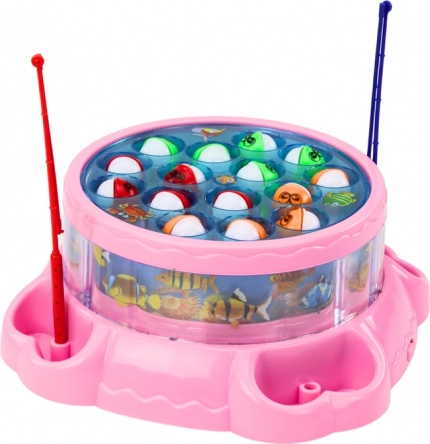 Różowa gra w łowienie rybek zamieni każdy dziecięcy pokój w małe akwarium. Po włączeniu jeziorko płynnie się obraca, a rybki naprzemiennie otwierają i zamykają pyszczki, by dzieci mogły je łapać dołączonymi wędkami. Melodie, światła i ruch tworzą magiczną atmosferę i zachęcają dzieci do koncentracji oraz cierpliwości.