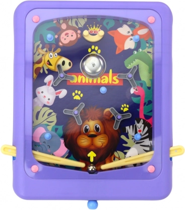 Zabawna zręcznościowa gra pinball w fioletowym kolorze z uroczym motywem zwierzątek ucieszy dzieci i dorosłych. Za pomocą dźwigni po bokach sterujesz kulką i starasz się trafiać w pola celu na planszy. Gra rozwija koordynację, szybkie refleksy i oferuje nieskończoną zabawę dla całej rodziny. Odpowiednia dla dzieci od 3 lat, certyfikaty CE i zgodność z EN71.