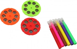 Projektor, 3 wymienne dyski, 6 kolorowych flamastów, baterie AG13