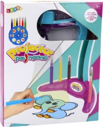 Projektor do rysowania z 3 wymiennymi dyskami i flamastami, fioletowy