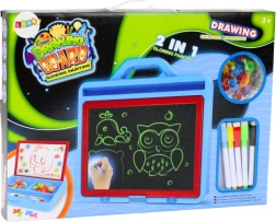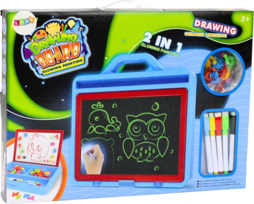 Ta duża tablica do rysowania jest idealna dla małych artystów i przedszkolaków. Oferuje rysowanie za pomocą magicznych zmywalnych markerów oraz specjalnego LED świetlnego pisaka, który rozświetla rysunki w przyciemnionym pomieszczeniu. Dzieci mogą ćwiczyć pierwsze litery, cyfry i proste działania – w formie zabawy.