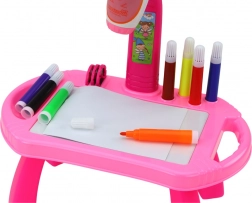 Odkryj zabawny projektor do rysowania ze stolikiem w różowym kolorze, który wprowadzi dzieci w świat tworzenia. Oferuje 32 motywy na 4 slajdach, 8 kolorowych pisaków, zeszyt do rysowania oraz regulowany rozmiar i kąt projekcji. Świetna pomoc w rozwoju kreatywności i motoryki małej, idealny prezent dla dzieci od 3 lat. Zasilanie zapewniają 3× AG13 (w zestawie).