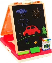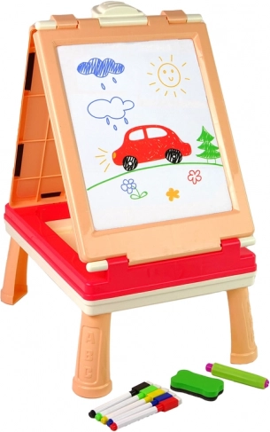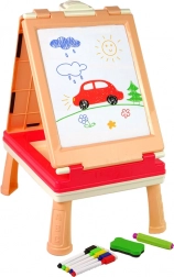 Wspieraj wyobraźnię i naukę dzieci z uniwersalną tablicą 3w1. Jedna strona jest przeznaczona do rysowania kredą, druga do pisania i malowania markerami suchościeralnymi. Dzięki solidnemu stolikowi całość jest stabilna, a dzieci mają pod ręką akcesoria i plansze do gier.