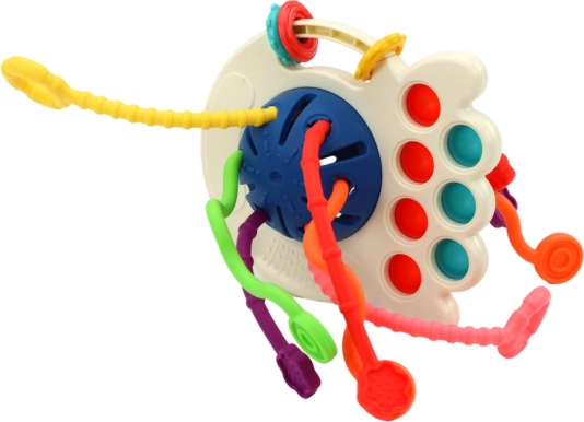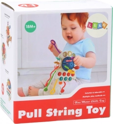 Zabawka zawiera 6 sznureczków o różnych kolorach i fakturach, które nie tylko zachęcają do zabawy, ale także rozwijają zmysł dotyku i koordynację. Niektóre sznureczki są łatwe do ciągnięcia, podczas gdy inne wymagają większego wysiłku, co stanowi wyzwanie dla małych rączek.
