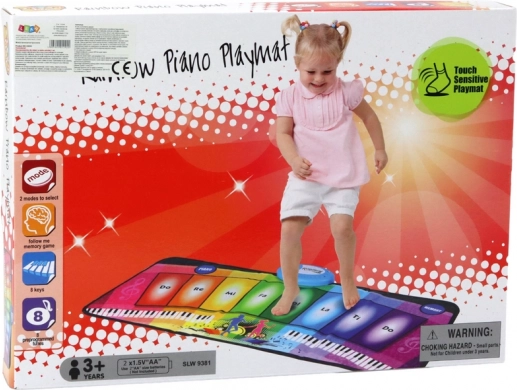 Interaktywna mata muzyczna Pianinko umożliwia dzieciom grę na wbudowanej klawiaturze, która aktywuje się po naciśnięciu klawiszy na macie. Ta funkcja nie tylko pozwala odtwarzać wstępnie ustawione melodie, ale także umożliwia twórczą improwizację i eksperymentowanie z dźwiękami.