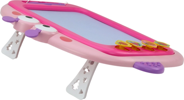 Odkryj zabawną i edukacyjną zabawkę dla dzieci – różową magnetyczną tablicę z wymazywaniem, która oferuje rysowanie w 4 kolorach oraz 4 stemple w kształtach. Dzięki łatwemu czyszczeniu suwakiem dzieci mogą tworzyć wciąż na nowo, rozwijać motorykę małą, kreatywność i uczyć się przez zabawę.