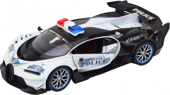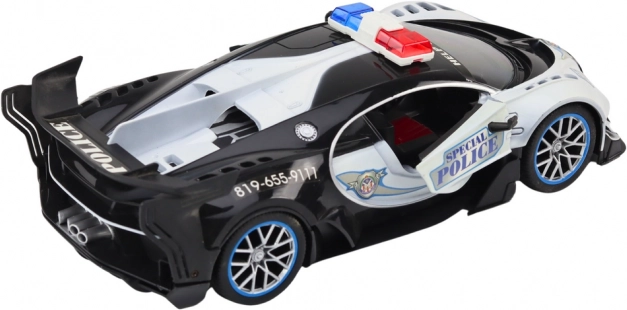 Czarno-biała karoseria z detalami i belką świetlną nadaje autu autentyczny wygląd prawdziwego pojazdu interwencyjnego – idealny do dynamicznych scenariuszy.