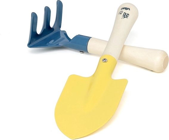 Wszystkie narzędzia mają bezpieczne drewniane uchwyty, co gwarantuje wygodne i bezpieczne użytkowanie nawet dla najmniejszych dłoni.