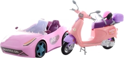 Różowy samochód (33 cm), realistyczny skuter (30 cm) i rower (17 cm) pozwolą lalkom wyruszyć na wycieczki, do miasta i do parku. Są łatwe w prowadzeniu i wspierają dynamiczną zabawę.