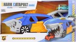 Zabawna trasa wyścigowa w motywie rekina zamieni każde popołudnie w pełen akcji wyścig. Duży samochód w kształcie rekina służy jako wyrzutnia i dzięki gumkowemu mechanizmowi posyła dołączone autka do przodu. Zestaw zawiera duży samochód oraz 2 małe autka, wykonany jest z wytrzymałego plastiku i nadaje się dla dzieci od 3 lat.