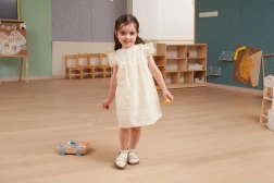 Dzięki sznurówce dziecko może ciągnąć wózek po podłodze, co zwiększa zabawę i umiejętności ruchowe.