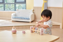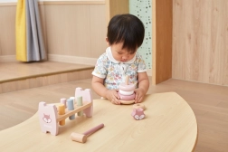 Zabawki są przeznaczone dla dzieci od 12 miesięcy i łączą naukę z zabawą. Piramida pomaga dziecku nauczyć się precyzji ruchów ręki, co jest ważne dla przyszłych umiejętności pisania.