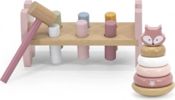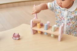 Zestaw PolarB od marki Viga oferuje dwie pastelowe drewniane zabawki: edukacyjną piramidę i zabawkowego kowala z młotkiem. Obie zabawki nie tylko dostarczają świetnej zabawy, ale także pomagają rozwijać umiejętności motoryczne i logiczne myślenie.