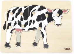 Dzieci poćwiczą rozpoznawanie kształtów oraz nazywanie zwierząt. Kontrastowy czarno‑biały motyw krowy sprzyja koncentracji i lepszej orientacji.