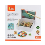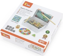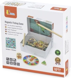 Zabawna i edukacyjna drewniana magnetyczna gra w łowienie rybek od VIGA zawiera 26 magnetycznych rybek z literami, 2 wędki oraz obrotowe kółko do wyboru zdobyczy. Rozwija koordynację ręka–oko, rozpoznawanie kolorów i kształtów oraz zapewnia mnóstwo zabawy z nietoksyjnymi farbami już od 18 miesięcy.