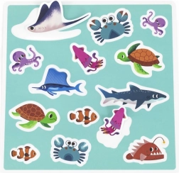 - Zawartość zestawu: 2 magnetyczne wędki, 1 obrotowe kółko, 26 magnetycznych rybek z literami, 14 naklejek.