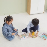 W zestawie znajdziesz 2 magnetyczne wędki, 26 kolorowych rybek oraz obrotowe kółko, które wskaże kolor lub kształt zdobyczy. Idealne do zabawy solo i rywalizacji dla dwojga graczy.