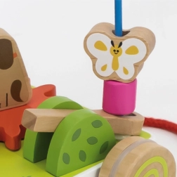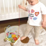 Zabawka przeznaczona jest dla dzieci od 18 miesięcy. Wspiera pierwsze kroki dzięki sznurkowi do ciągnięcia, uczy rozpoznawania kolorów i kształtów oraz wzmacnia myślenie logiczne. Dzięki wysokiej jakości drewnu i bezpiecznym, nietoksycznym farbom to idealny wybór do codziennej zabawy w domu i w podróży.