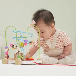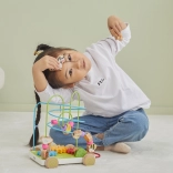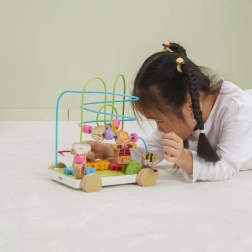 Kolorowe koraliki i kształty na drucikach wspierają precyzyjne chwyty, koncentrację i koordynację ręka–oko. Dzieci naturalnie ćwiczą kolory, kształty oraz myślenie logiczne.