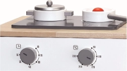 Dwie płyty grzewcze, obrotowe pokrętła i piekarnik z przezroczystymi drzwiczkami zachęcają dzieci do twórczej zabawy i rozwijają ich wyobraźnię.