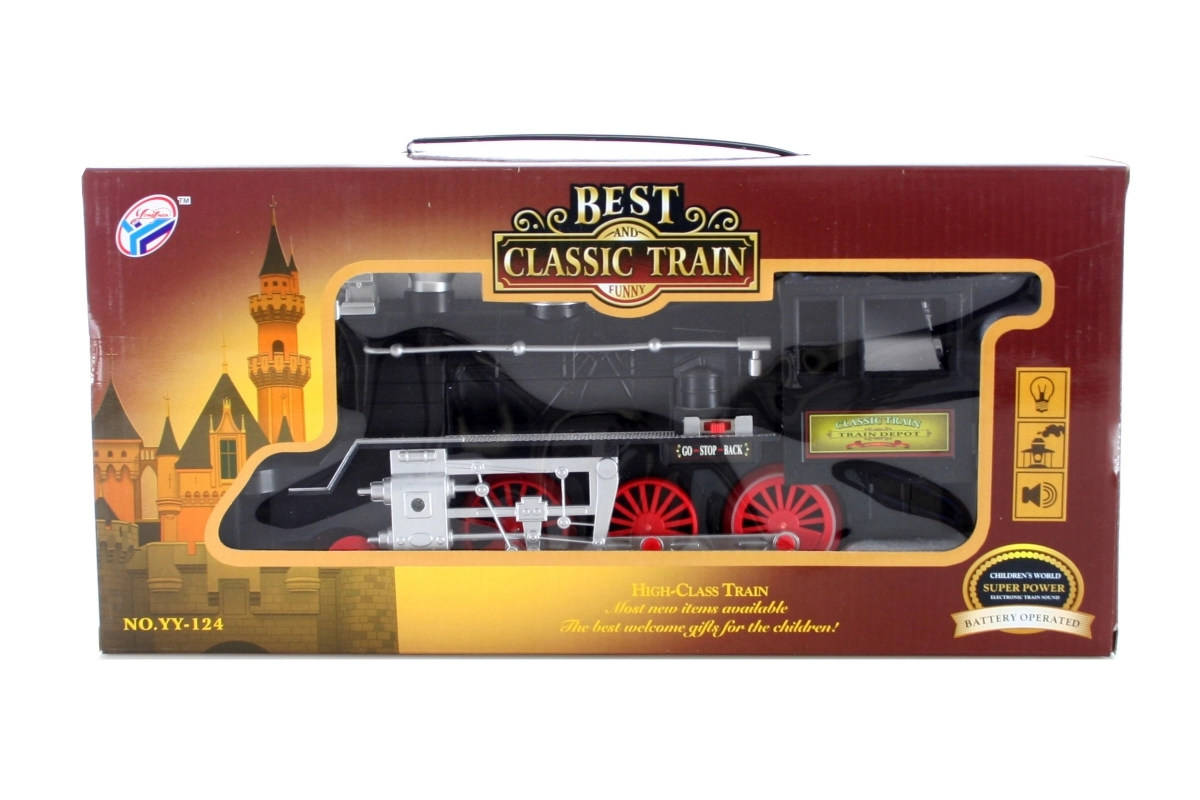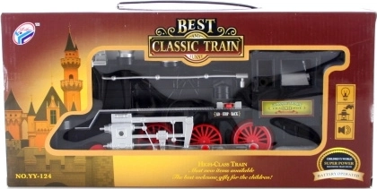 Plastowa lokomotywa na 6 baterii AA. Długość lokomotywy ok. 35 cm. Świeci, trąbi i dymi. Lokomotywa ma wewnątrz spiralę elektryczną oraz specjalny nietoksyczny olej do dymienia. Podczas nagrzewania spirali powstaje dym. Wymiary opakowania ok. 39 × 11,5 × 18,5 cm. Wiek 3+